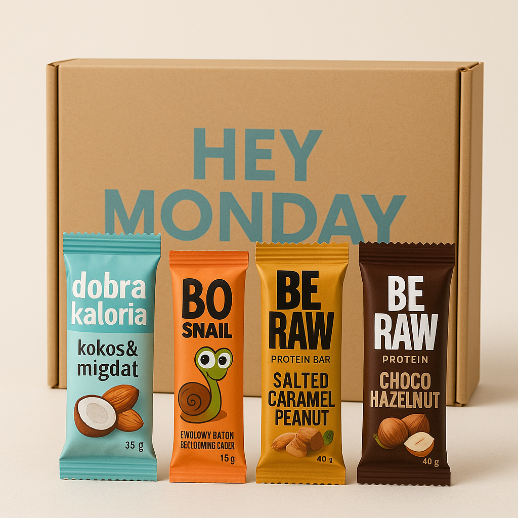 Hey Monday, to comiesięczna dostawa starannie dobranych przekąsek, które dodają siły, humoru i dobrego nastroju zespołowi. Wybierasz pakiet, a my co miesiąc dowozimy nową porcję energii - zawsze na czas, zawsze z uśmiechem.
