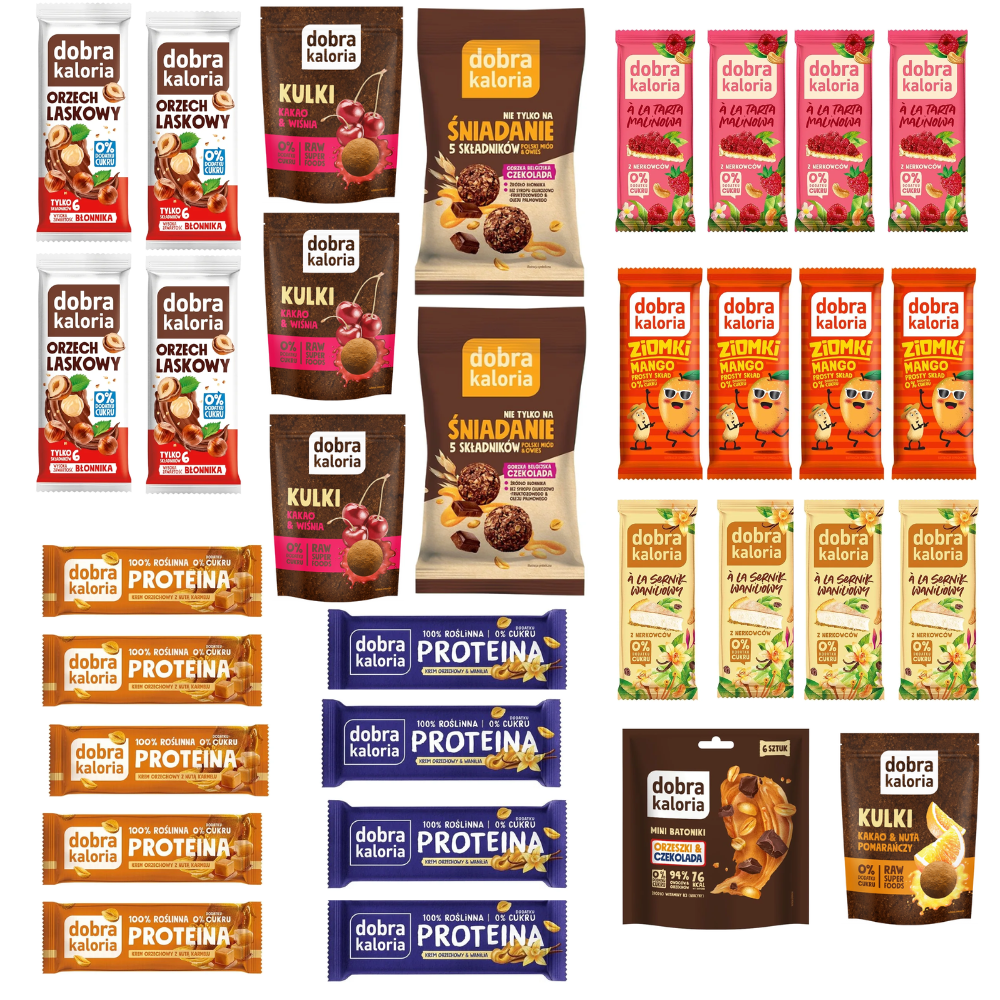 - 40 / 80 / 120 przekąsek w mixie: słodkie, słone, zdrowe i klasyczne